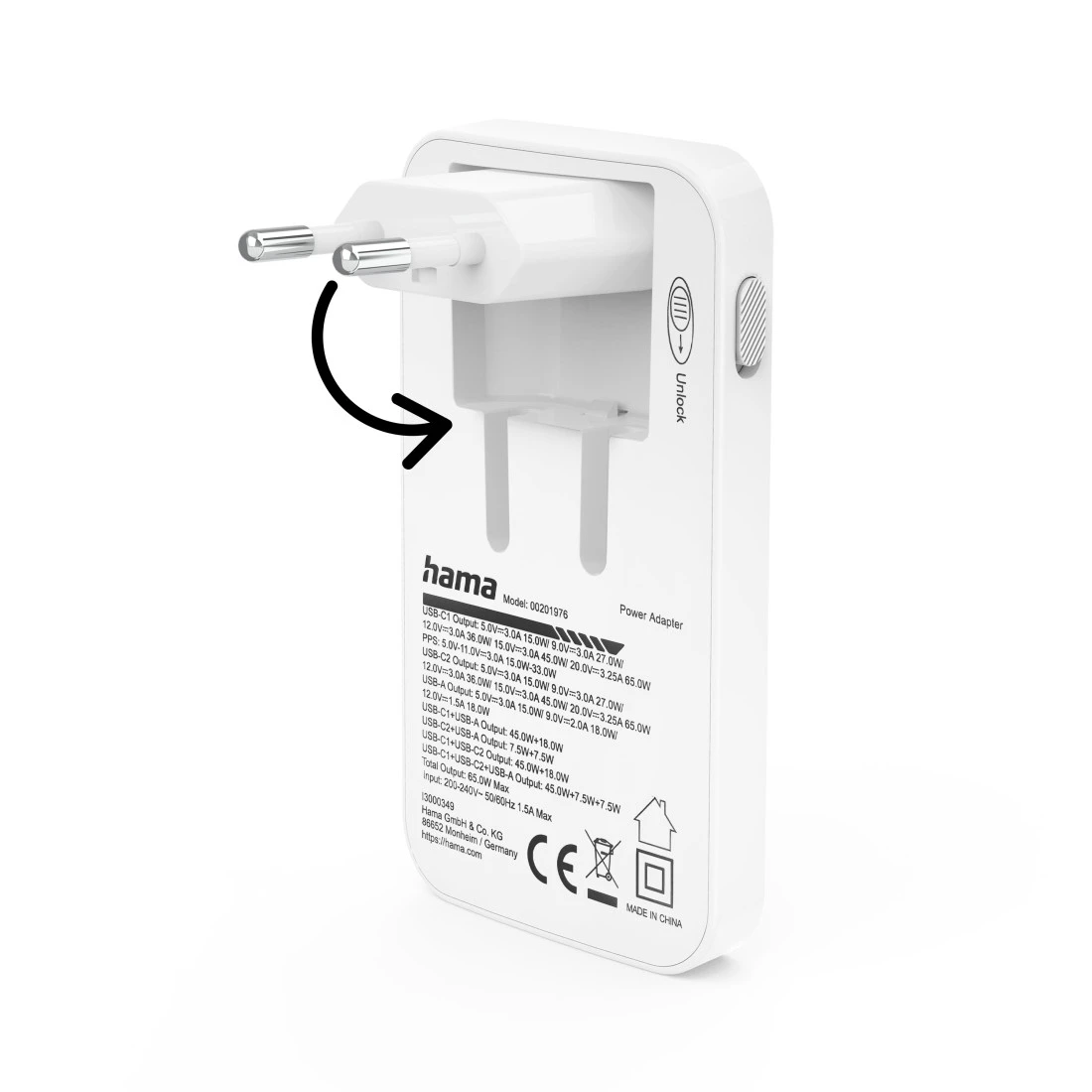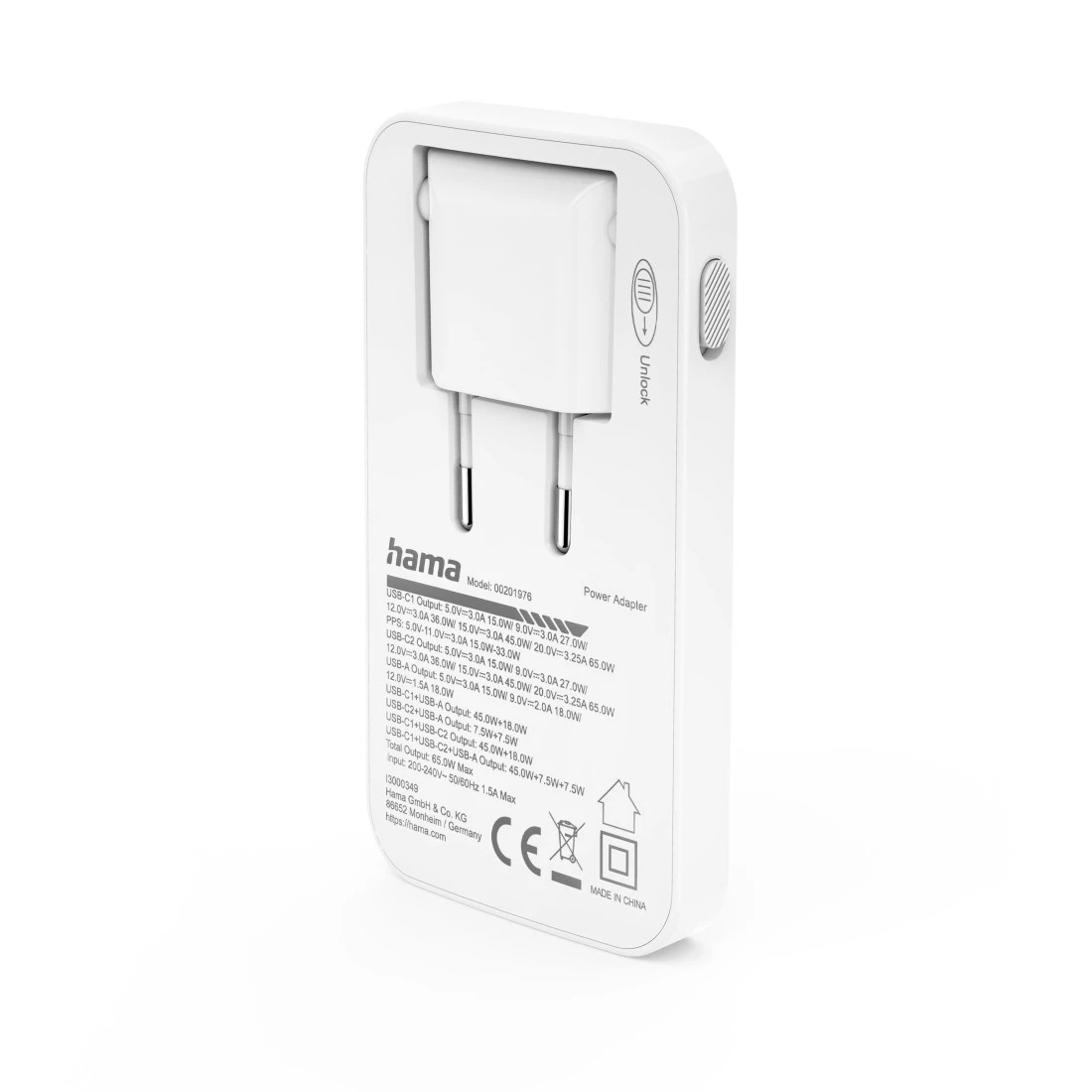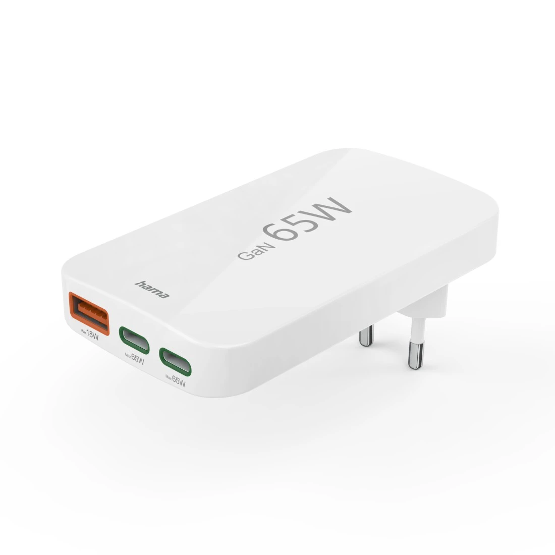 "The compact and practical Hama 65-watt charger is ideal for any space. Thanks to its flat design, it can be placed neatly behind a bed, bedside cabinet or sofa. It can supply power to up to three devices at the same time. The Hama charger is the ideal companion for commuters, business travellers and tech-savvy users looking for an all-in-one charging solution thanks to its extremely flat design, clever connections and modern GaN technology. In practice, the Flat Charger impresses with its outstanding combination of design, functionality and performance. If you're in a hurry, it's here to help. A mobile phone can be charged by more than 20 per cent in just 10 minutes. This makes the Hama Flat Charger an obvious choice for anyone seeking smart technology in a compact format."